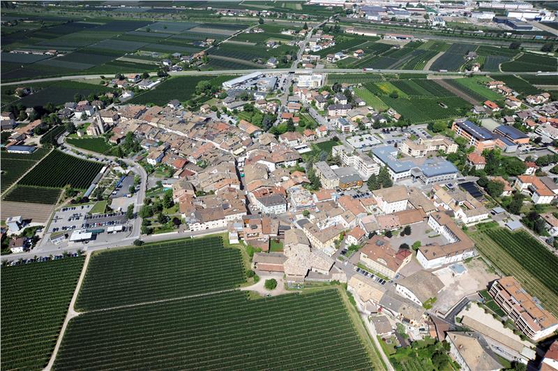 Die Gewerbegebiete weiterer zwölf Gemeinden werden heuer ans Glasfasernetz angeschlossen. Im Bild: eine Luftanufnahme von Neumarkt und Auer. Foto: LPA/Landeszivilschutz