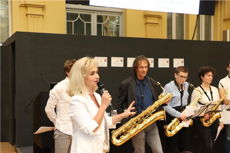 "Wettbewerbe schaffen Anreize", unterstrich die Landeskoordinatorin des Wettbewerbs Siglinde Doblander, die neben den "Top Five" auch zahlreiche Eltern, Lehrpersonen und Schulführungskräfte zu der Feierstunde begrüßen konnte. "Ihr zeigt, dass Mathematik spannend sein kann", wandte sich Landeschuldirektorin Sigrun Falkensteiner an die kleinen und großen Schülerinnen und Schüler, "und für euch sind Probleme interessante Knobelaufgaben, die ihr lösen könnt". Musikalisch gestaltet wurde die heutige Feierstunde von Schülerinnen und Schülern der Musikschule Bozen mit sechs Saxophonen und einem Cajon unter der Leitung von Hans Tutzer.