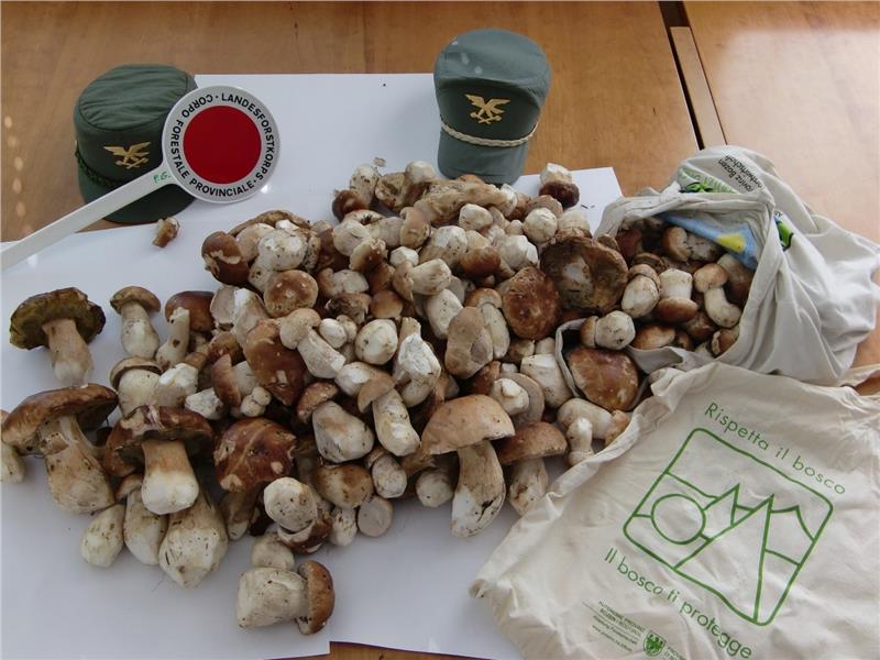 Im Zuge ihrer Kontrollen hat die Forststation Bozen am Wochenende im Kohlerer Gebiet zehn Kilogramm Pilze eingezogen, die eine Person allein gesammelt hatte. Foto: LPA/Forstation Bozen