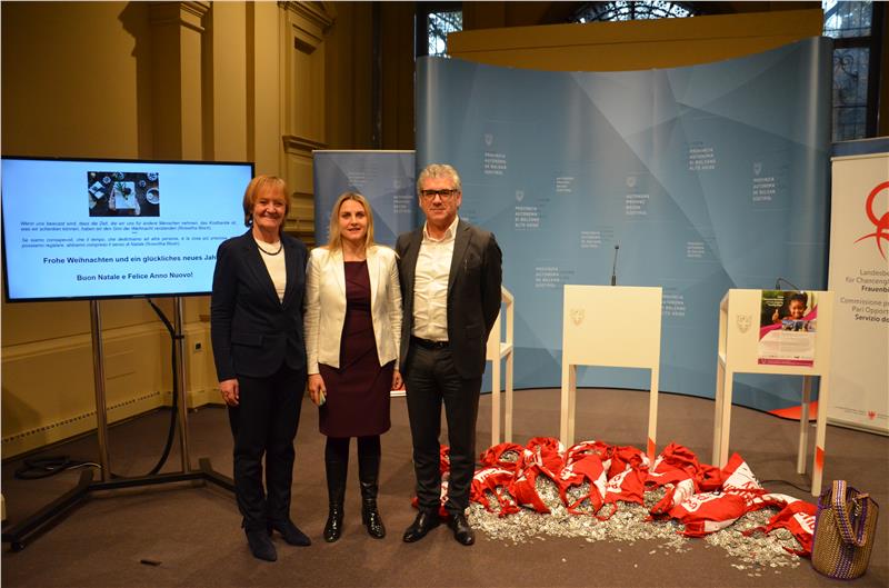 In ganz Südtirol wurdenein Jahr lang Laschen von Getränkedosen gesammelt. Damit unterstützt der Landesbeirat für Chancengleichheit das Projekt "Sewing Hope - Hoffnung nähen" von Schwester Rosemary Nyirumbe, das von Krieg und Gewalt traumatisierten Mädchen in Uganda Hoffnung geben soll. "Nach gut einem Jahr haben wir insgesamt 56,5 Kilo Laschen gesammelt, was einer Menge von ca. 180.800 Laschen entspricht. Wenn man davon ausgeht, dass daraus 555 Taschen gefertigt werden, sprechen wir von einem Reinerlös von über 16.000 Euro", sagt Beiratspräsidentin Ulrike Oberhammer. Dabei sei sie zu Beginn gefragt worden, ob es für sie moralisch vertretbar sei, Müll nach Afrika zu schicken. Schwester Rosemary habe ihr aber von Beginn an deutlich gemacht, dass die Bewertung, ob ein Gegenstand Müll oder Rohstoff sei, immer von der Perspektive abhänge. "Die Laschen stehen als Symbol für diese junge Frauen, die Opfer von Krieg waren und ebenso wie Müll behandelt wurden. Und nun wird aus den Laschen etwas neues, Schönes gestaltet. Auch die Mädchen können mit Hilfe dieser Laschen in ein selbstbestimmtes Leben zurückkehren", führt Oberhammer weiter aus.