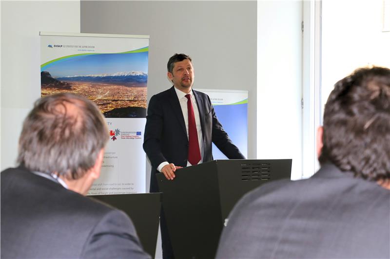 In den kommenden Jahren gelte es, Kräfte für neue nachhaltige Mobilitätslösungen zu bündeln, so LR Alfreider beim Treffen der Eusalp Aktionsgruppe 4 (FOTO:LPA/Roman Clara)
