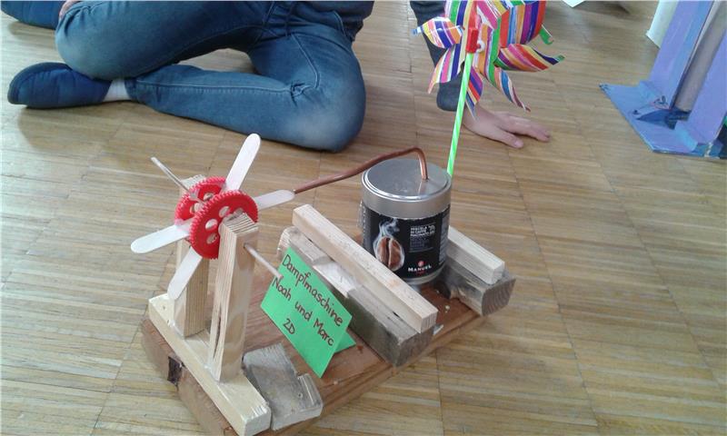 Die Schüler Noah und Marc einer zweiten Grundschulklasse haben diese Dampfmaschine gebaut - Foto: LPA/Christian Blaas