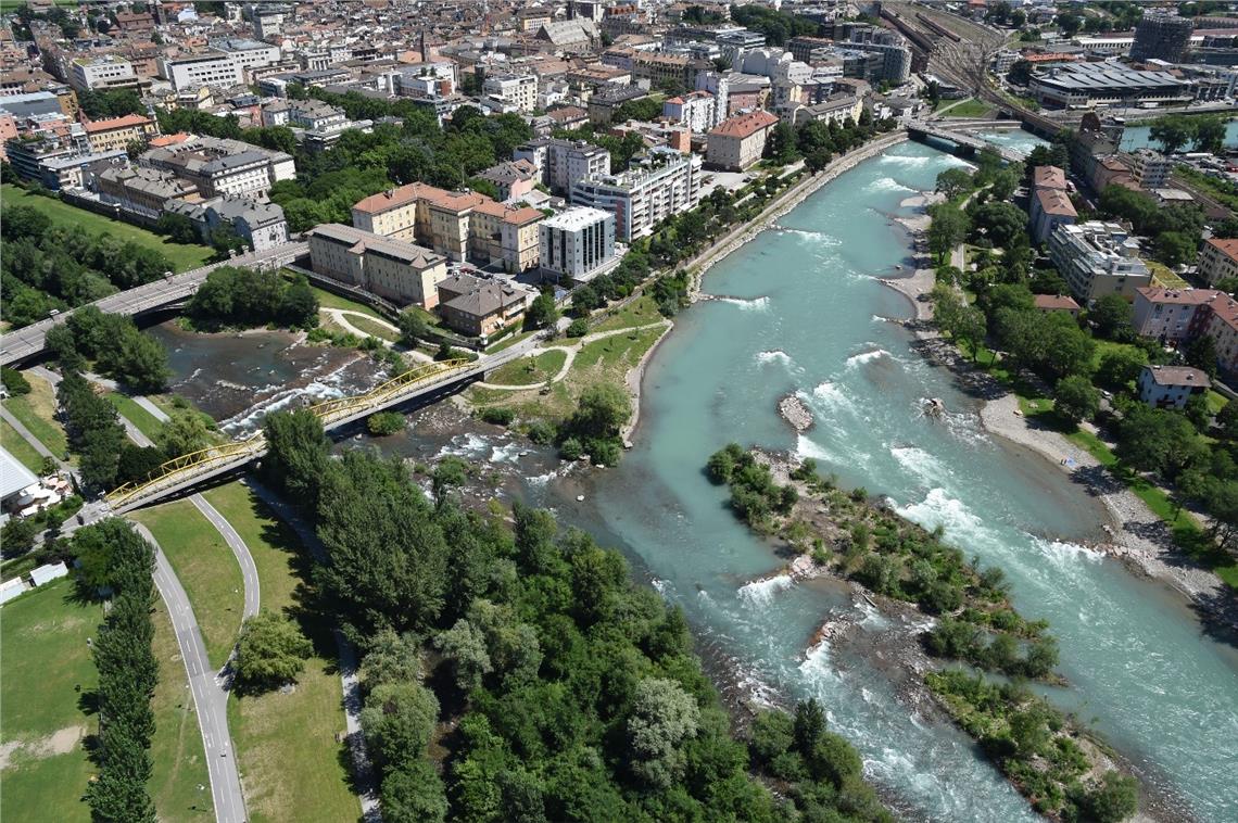 Revitalisierter Abschnitt am Zusammenfluss Talfer-Eisack: vielfältige ökologische Funktionen und verbesserter städtischer Naherholungsraum. Foto: LPA/Agentur für Bevölkerungsschutz