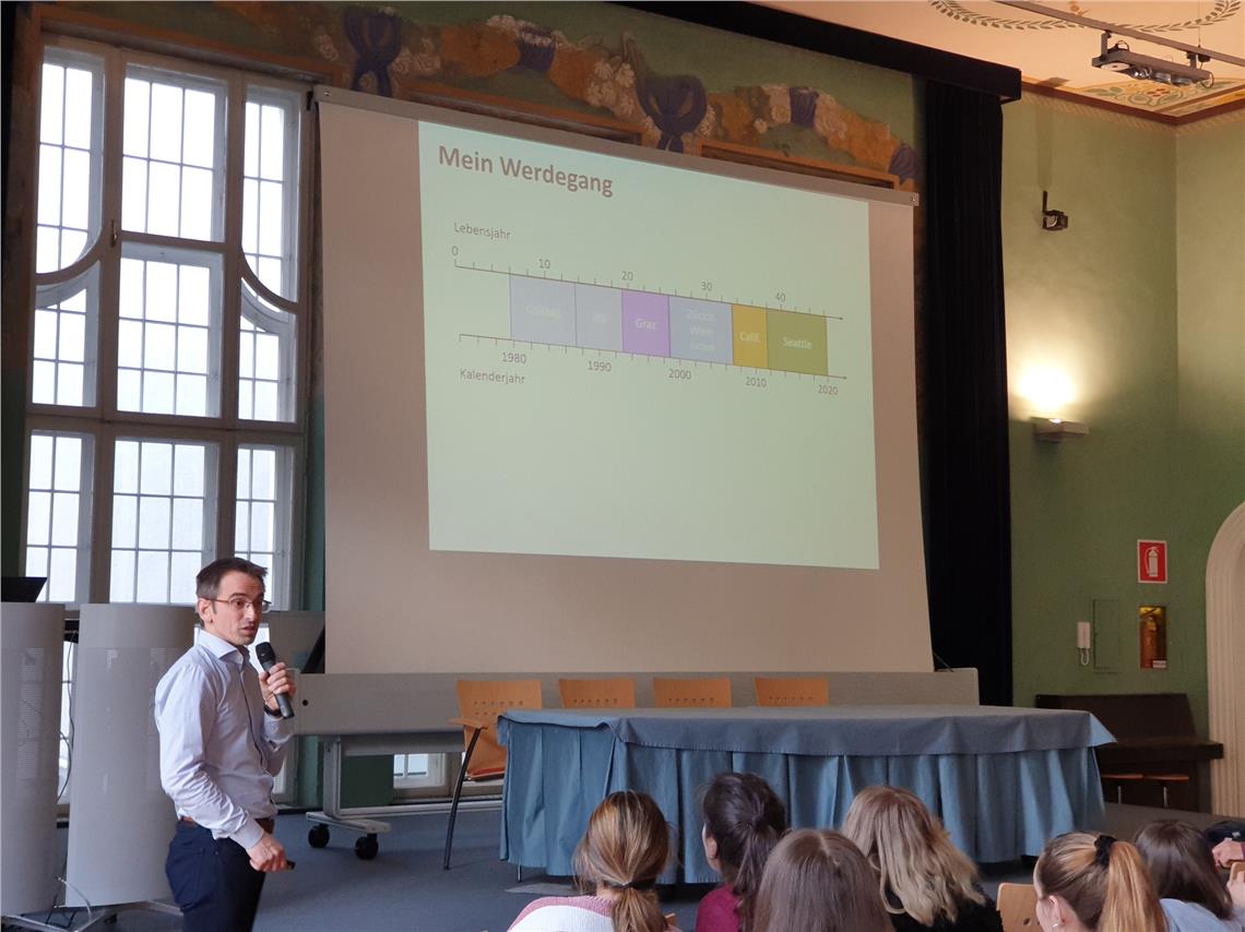 Über seine Forschungsarbeit in den USA berichtete Stefan Stoll von der University of Washington in Seattle im Rahmen einer Vortragsreihe zu 20 Jahren Chemieolympiade-Landeswettbewerb.