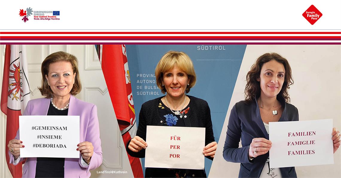 Zum Internationalen Tag der Familie am 15. Mai unterstreichen die Familienlandesrätinnen der Europaregion Tirol–Südtirol–Trentino gemeinsam den Wert der Familie und die Wichtigkeit, alle Familien angesichts der Coronakrise zu unterstützen. In den drei Ländern der Euregio wurden bereits zahlreiche Maßnahmen für Familien gesetzt, um ihnen akute Hilfestellungen zu bieten.