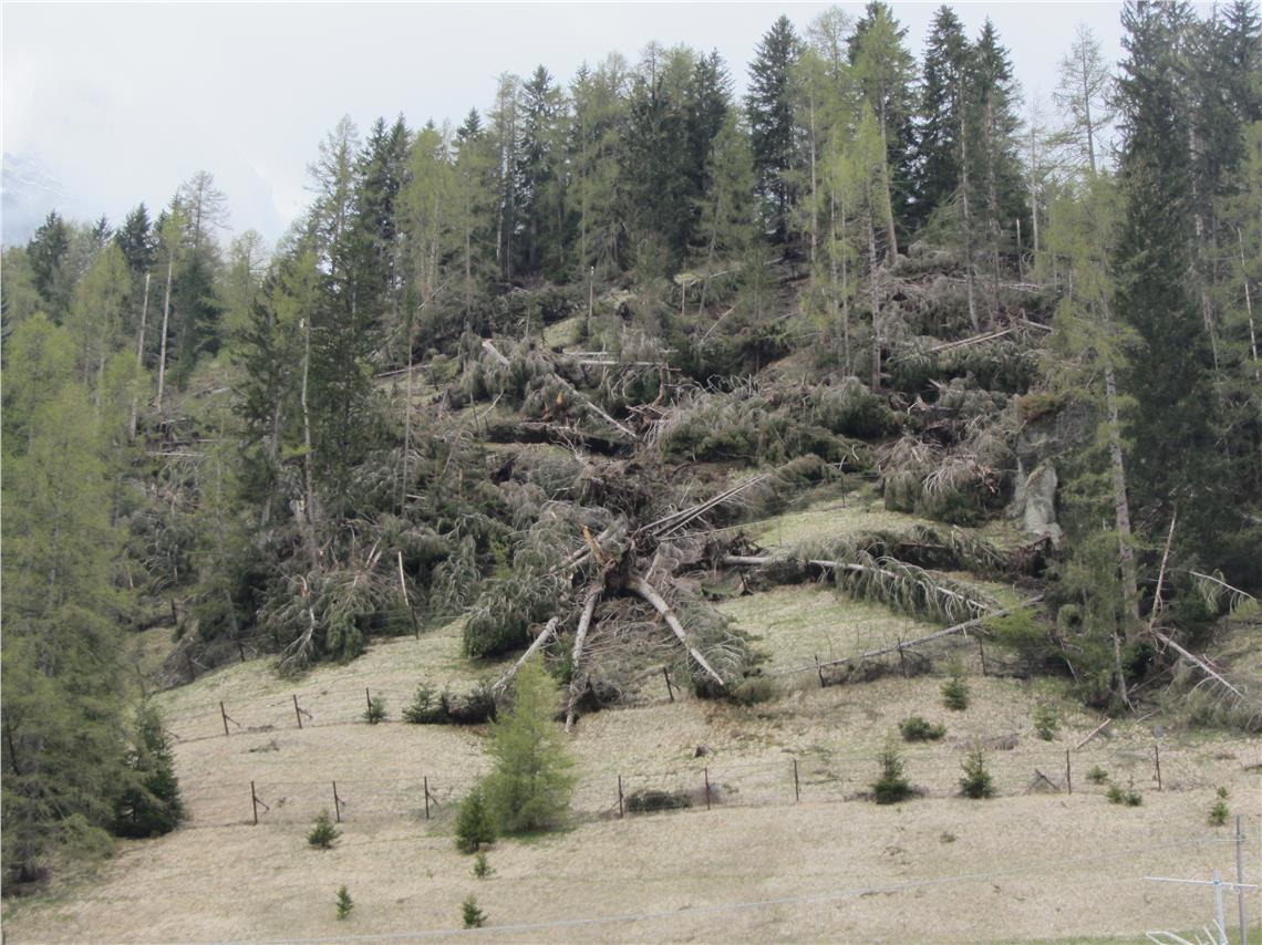 Das Jahrhundertunwetter im Oktober 2018 mit den immensen Windwürfen hatte der Lawinenverbauung arg zugesetzt: Fast der gesamte Baumbestand innerhalb der Lawinenverbauung wurde in kürzester Zeit umgeworfen und zerstörte die in den 1990er Jahren errichteten Lawinenverbauungen. Aufgrund des äußerst unwegsamen Geländes musste unter großer Anstrengung in Zusammenarbeit mit der Forstbehörde zuerst ein Erschließungsweg errichtet und anschließend das gesamte Schadholz mit Seilkraneinsatz entfernt werden. Diese Arbeiten konnten erst im Frühjahr dieses Jahres abgeschlossen werden.