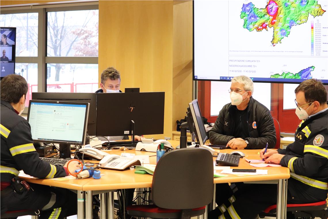 Seit heute (5. Dezember) ist das Lagezentrum bei der Berufsfeuerwehr in der Drususallee in Bozen aktiv und beobachtet die Situation im Lande.