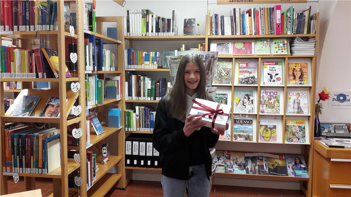 Nun sind mit coronabedingter Verspätung und Unterstüztung der Öffentlichen Bibliotheken auch die Hauptpreise übergeben worden. Die Preisträger und Preisträgerinnen haben entweder ein einminütiges Video oder ein Bild zu einem der Bücher der Leseaktion gestaltet. Eine Fachjury hat die insgesamt 69 Videos und 229 Fotos gesichtet, bewertet und sieben Hauptpreisträger ermittelt. Über ein I-Pad freuen dürfen sich David Tommasini aus Leifers für sein Video zu "Gregs Tagebuch 14", Daniele Bizzotto aus Bozen für sein Video zu "I segreti delle streghe". Carmen Egger aus Jenesien für ihr Video zu "Offline ist es nass, wenn es regnet", Hannah Aschbacher aus Lappach für ein Bild zu "Immer on", Emanuele Dellai aus Leifers für ein Bild zu "Wonder", Marlene Bormuth aus Lana für ein Bild zu "Dünnes Eis" und Anna Pompili aus Bozen für ein Bild zu "Qualcosa ci inventeremo".