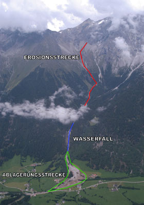 "Konkrete Untersuchungsergebnisse liegen noch keine vor", erklärt Pierpaolo Macconi, in der Abteilung Wasserschutzbauten zuständig für die Untersuchung solcher Ereignisse. Fest stehe bisher nur, dass es im August in relativ kurzer Zeit heftig geregnet habe. "Dazu kommt, dass die Oberfläche des Toteises, das ober der Abbruchstelle der Mure liegt, durch die vorangegangene Hitzewelle glatt und blank geworden ist und das Regenwasser deshalb nicht zurückhalten konnte", erklärt Christoph Oberschmied, Experte im Hydrographischen Amt. Die Folge: Das abfließende Wasser hat auf 2600 Metern Meereshöhe kilometerlange und bis zu zehn Meter tiefe Gräben aufgerissen, durch die eine ungeheure Menge an Schuttmaterial talabwärts gespült worden ist.