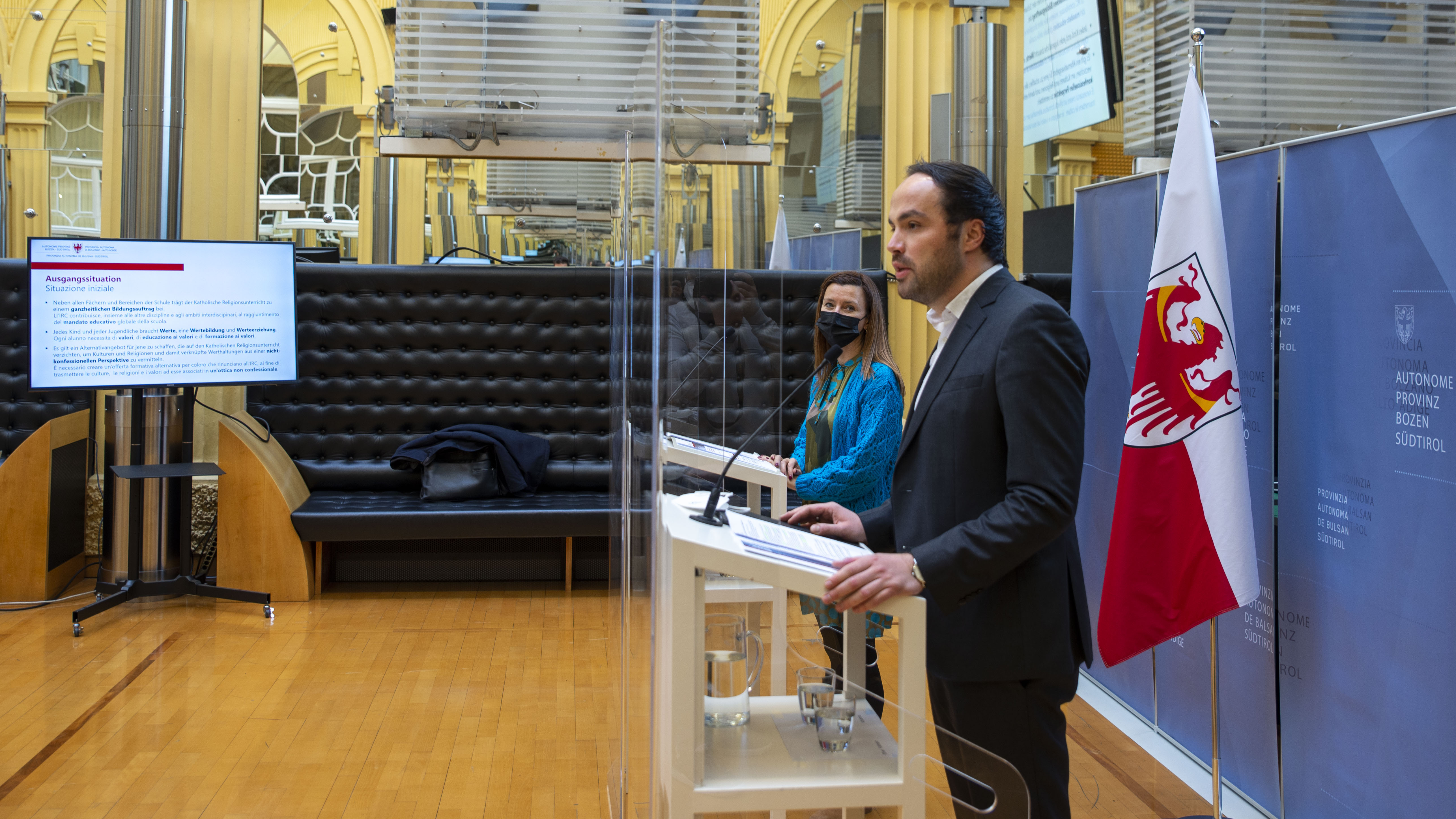 8634 Kinder und Jugendliche an Südtirols Grund,- und Mittelschulen sowie Ober- und Landesberufsschulen, also rund 12 Prozent aller Schülerinnen und Schüler, besuchen den Katholischen Religionsunterricht nicht. Bildungspolitisches Ziel ist, dass es im Schulbetrieb für sie alle zukünftig ein verpflichtendes Alternativangebot zum Katholischen Religionsunterricht gibt, und zwar eine Form von Ethikunterricht. Details zur geplanten Umsetzung haben heute (15. Dezember) Landesrat Philipp Achammer und Landesschuldirektorin Sigrun Falkensteiner bei der Pressekonferenz vorgestellt. Angelika Ebner Kollmann, Schulführungskraft des Grundschulsprengels Bozen, und Michaela Dorfmann vom Schulsprengel Meran Untermais haben von diesbezüglichen Pilotprojekten aus der Praxis berichtet.