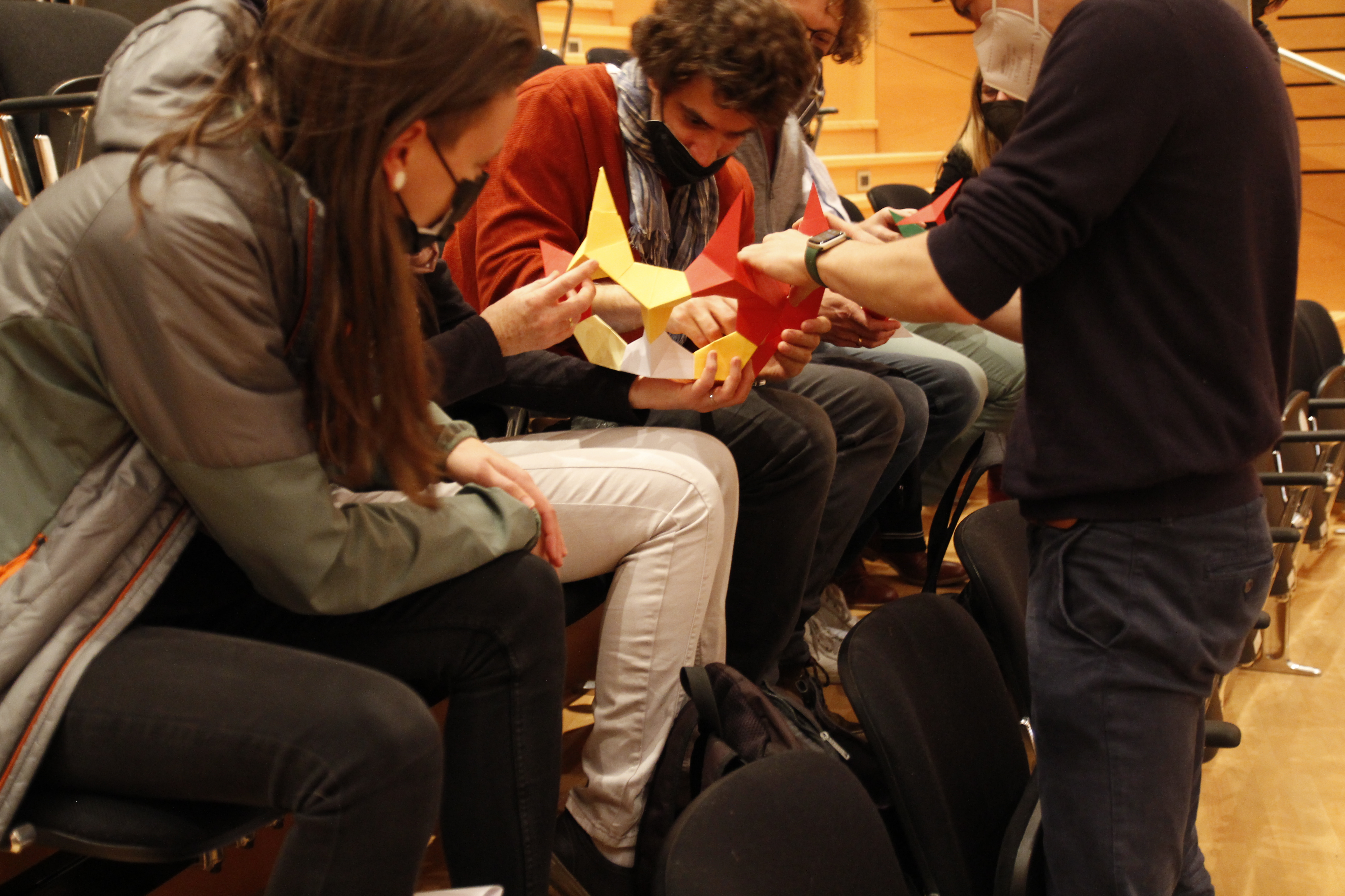 Halbe Würfel konstruieren: Lehrpersonen beim Tag der Mathematik