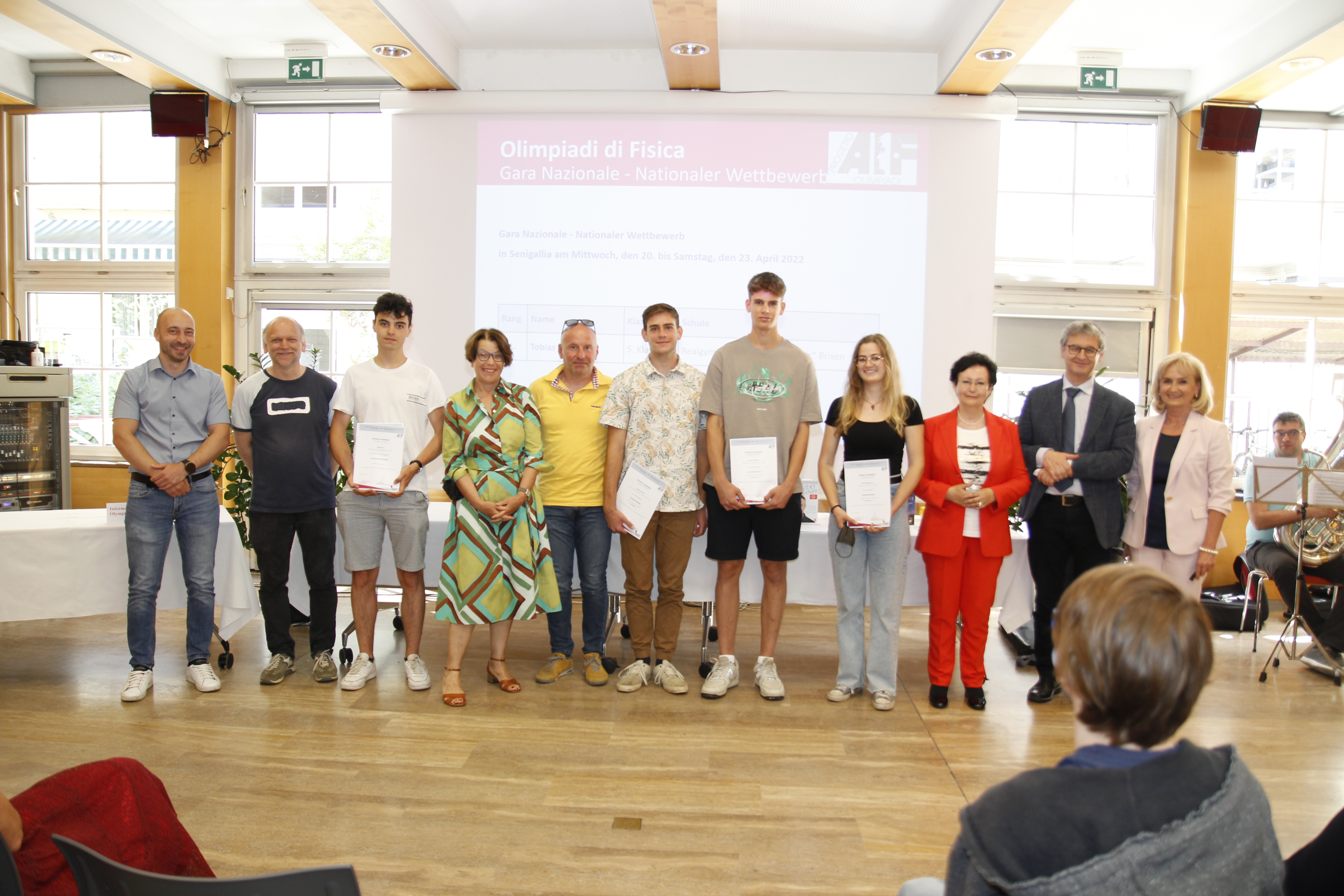 Die 45 Olympionikinnen und Olympioniken aus 14 deutschsprachigen Oberschulen, die bei den Landes-, Regional- oder gesamtstaatlichen Wettbewerben der Mathematik-, Informatik-, Physik-, Chemie- und Philosophieolympiade im Schuljahr 2021/22 die besten Platzierungen erreicht haben, sind heute (8. Juni) im Kolpinghaus in Bozen von Landesrat Philipp Achammer, Landesschuldirektorin Sigrun Falkensteiner und der Direktorin der Pädagogischen Abteilung der Deutschen Bildungsdirektion Gertrud Verdorfer mit Buchpreisen und Urkunden ausgezeichnet worden. Einige der Olympioniken machten mit Spitzenergebnissen auf sich aufmerksam (PowerPoint-Präsentation im Anhang).