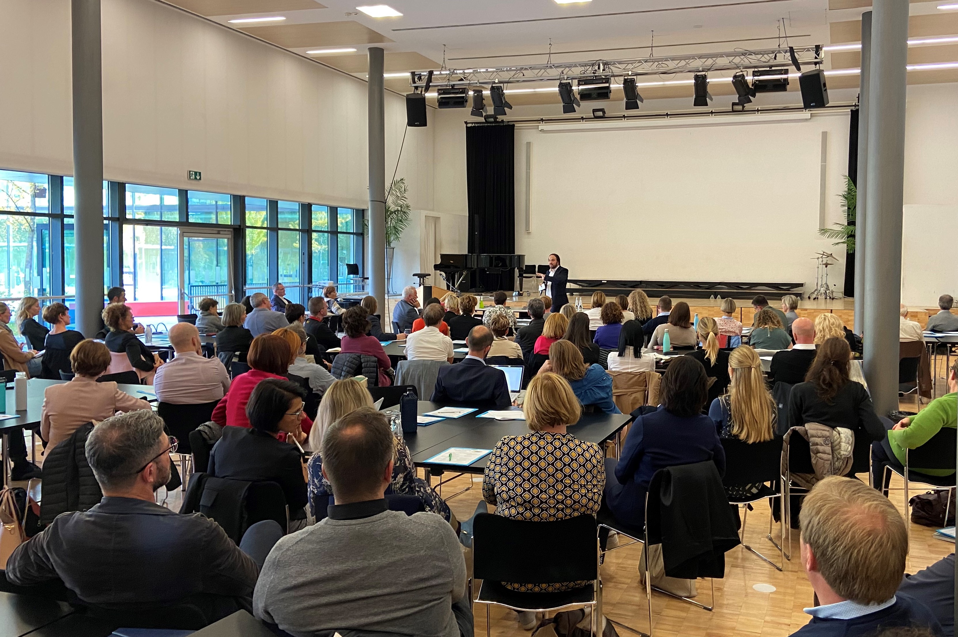 Der Germanist und Sprachlehr- und Sprachlernforscher Hans-Jürgen Krumm forderte in seinem Vortrag: Mehrsprachigkeit solle ein Leitkriterium der Schulentwicklung für Schülerinnen und Schüler in einer vielsprachigen Gesellschaft sein. Durch eine zunehmend zusammenwaschsende Welt sei Sprachenvielfalt gängig, Sprache aber oftmals eine Eintrittskarte und Sprachungerechtigkeiten eine Folge. Krumm unterstrich: "Wir unterrichten nicht Sprachen, wir unterrichten Menschen. Sprachförderung stärkt die kognitive Entwicklung und Mehrsprachigkeit ist eine wertzuschätzende Kompetenz."
