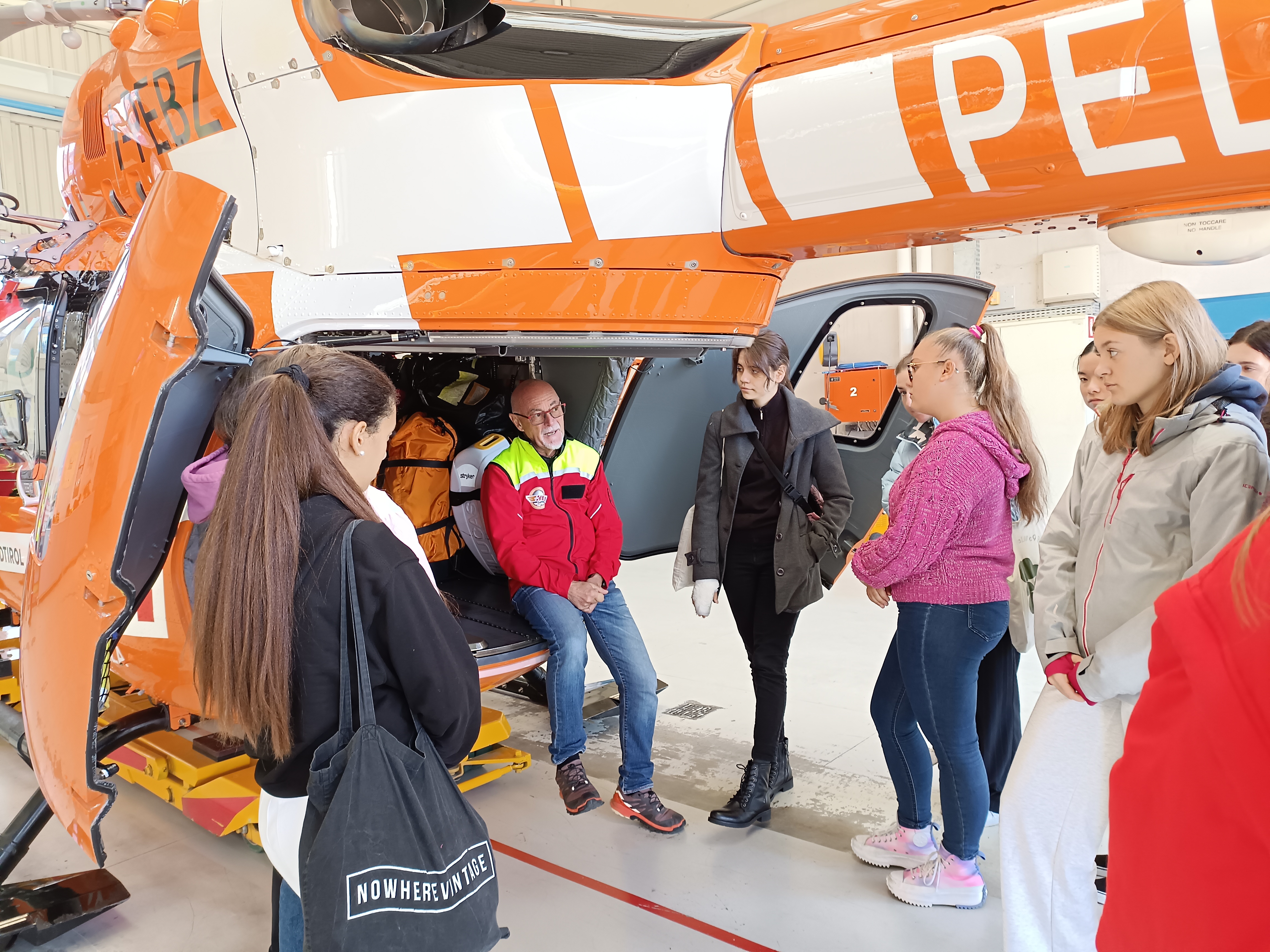 Die Oberschülerinnen und Oberschülern beim Besuch der Flugrettung (Foto: LPA/Christine Zingerle)