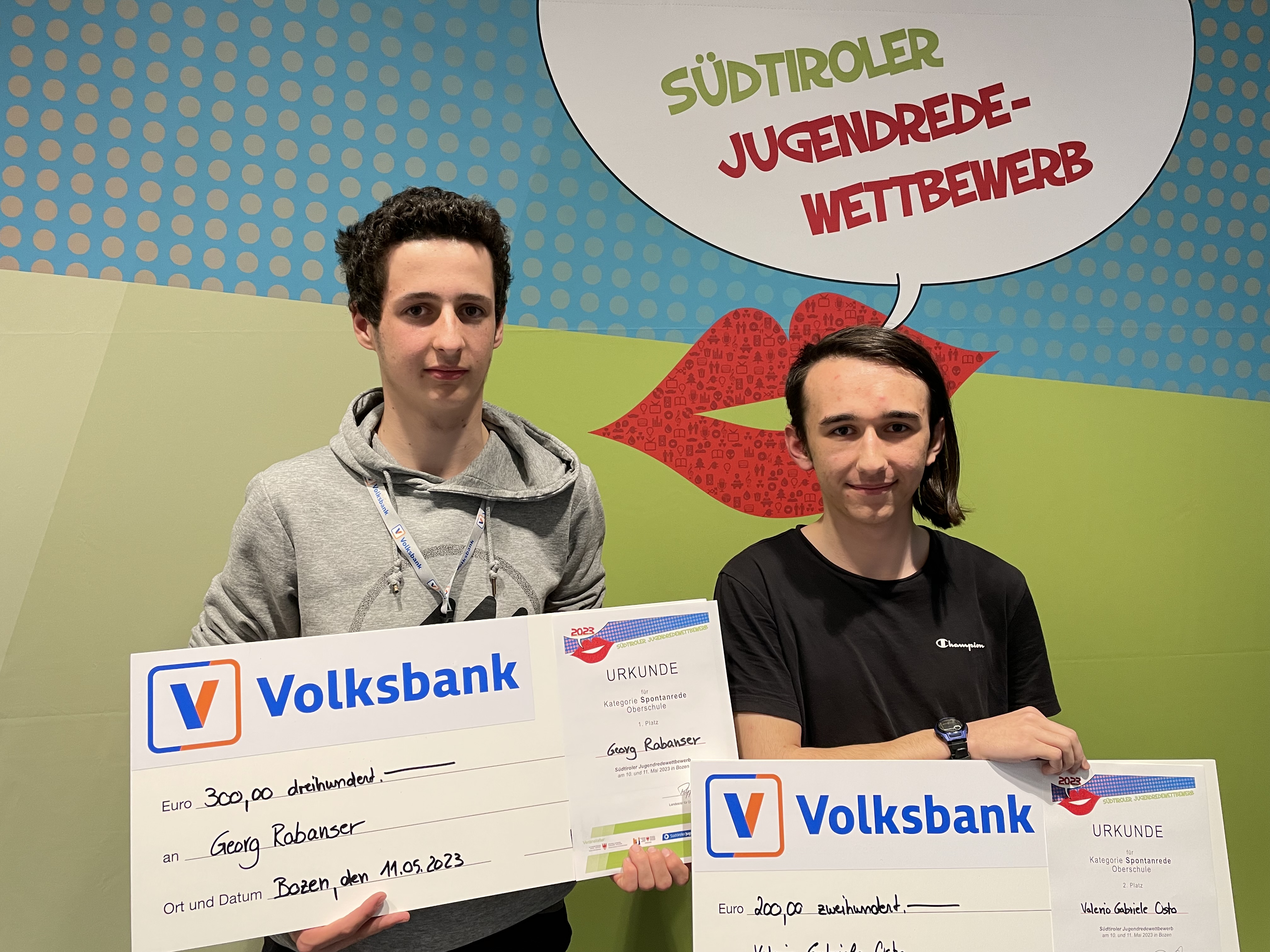 "Musik und schreiben sind wie ein 'safeplac' für mich, sie helfen mir, Dinge zu verarbeiten." "Es ist mir wichtig, dass wir Jugendlichen gehört werden und unsere Meinungen vertreten." Das sind nur zwei der Gründe, die Jugendliche zur Teilnahme am Jugendredewettbewerb bewegt haben, der am Mittwoch (10. Mai) und Donnerstag (11. Mai) am Hauptsitz der Volksbank in Bozen über die Bühne gegangen ist. Schülerinnen und Schüler der Mittelschule und Oberschule nahmen in den Kategorien Klassische Rede, Spontanrede und Sprache kreativ zu selbst gewählten und zugelosten Themen Stellung.