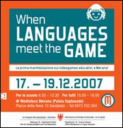 Una proposta nuova e divertente è quella che offre la Mediateca Multilingue di Merano a ragazzi e adulti con "When languages meet the game”: usare i videogames per imparare le lingue. Incontri a tema il 17, 18 e 19 dicembre 2007 dalle ore 15.00 alle 18.00.