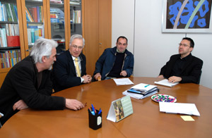 L'assessore C.Tommasini (1. da ds) a colloquio con i rappresentanti del Centro Casa (da sin.) A.Detassis, V.Prestifilippi e Horst Gasser. (FOTO/USP:B.Ravanelli)