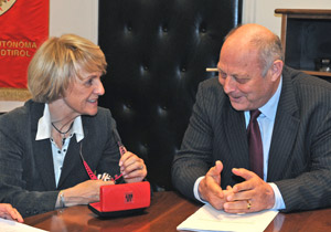 Danuta Hübner, polacca, commissario UE alle politiche regionali, sta compiendo una visita in Alto Adige su invito del presidente Durnwalder. Nella sua permanenza visionerà tra l'altro il Centro di sperimentazione Laimburg e alcuni progetti di ricerca finanziati con i fondi UE. Stamattina a Palazzo Widmann il presidente Durnwalder ha fornito un quadro di come la Provincia impiega le risorse finanziarie assegnate da Bruxelles e di come vengono attuati i programmi UE in Alto Adige. "I fondi strutturali sono fondamentali per lo sviluppo di un territorio come il nostro, privo di grandi centri urbani e con piccoli paesi", ha sottolineato Durnwalder al commissario UE ricordando i dati dei finanziamenti europei fino al 2013: 312 milioni € per lo sviluppo regionale, 160 milioni dal Fondo sociale europeo, 75 milioni per le infrastrutture rurali, 170 milioni per la cooperazione transfrontaliera (90 per i programmi con la Svizzera, 80 con l'Austria) e 15 milioni € per il programma Leader. "Sono circa 100 milioni all'anno che giungono in Alto Adige ma la loro importanza va al di là dell'aspetto finanziario, perchè grazie a questi programmi possiamo sviluppare molto sul territorio", ha aggiunto Durnwalder.