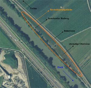 I lavori si riferiscono alla riva orograficamente sinistra dell'Adige: l'ampiezza del corso sarà portata fino a 15 metri, saranno ripristinati depositi di sabbia e ghiaia e boschi ripariali a cui saranno aggiunti zone a canneto e tronchi di alberi abbattuti Essendo presente una striscia di terreno di proprietà provinciale tra la pista ciclabile sul terrapieno arginale e la tratta ferroviaria, nell'ambito del progetto di rivitalizzazione é possibile spostare la ciclabile dalla zona arginale verso la ferrovia. Così sarà possibile abbassare un pò l'intera superficie in modo tale da strutturare a livelli differenziati la riva e l'area a cespugli dando vita ad ambienti vitali naturali differenti.