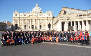 L'udienza speciale di Benedetto XVI nell'aula Nervi, a undici mesi dal terremoto dell’Aquila, ha visto confluire a Roma oltre settemila volontari da tutta Italia, insieme a una rappresentanza delle componenti del sistema nazionale di protezione civile. La delegazione dei 95 volontari altoatesini era composta da membri dei Vigili del fuoco volontari, del Soccorso alpino del CNSAS e AVS, della Croce Bianca, della Croce Rossa, del GOER, del Soccorso Subacqueo e degli alpini dell’ANA, oltre a 3 rappresentanti della Ripartizione provinciale protezione civile. Molti di loro si sono incontrati nuovamente dopo aver lavorato assieme in Abruzzo.