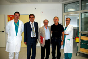 Il primario Pfitscher, l'assessore Theiner, il direttore di Ripartizione Tschager, il primario Thöni e il direttore sanitario Ploner