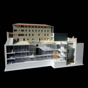 Il progetto prevede 4 piani interrati. I primi due composti da cinque aule ciascuno, il terzo composto da quattro laboratori e da un’aula d’informatica. I collegamenti orizzontali sono rappresentati, oltre che da normali corridoi, anche da passerelle-ballatoio; a fianco di questi percorsi, si aprono varie nicchie di studio.