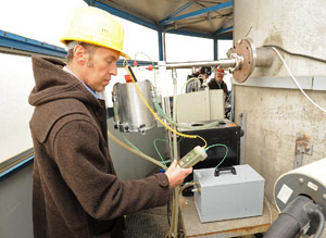 Il direttore del Laboratorio di chimica fisica, Luca Verdi, all'opera nella misurazione delle emissioni del termovalorizzatore di Bolzano (FOTO: USP/A.Pertl)