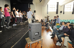 Il vicepresidente Tommasini nel pomeriggio di oggi, giovedì 7 aprile 2011, ha visitato le prove dei 113 ragazzi che partecipano al laboratorio di musical tutorato dall'Istituto musicale Vivaldi presso il Liceo Scientifico "Torricelli".