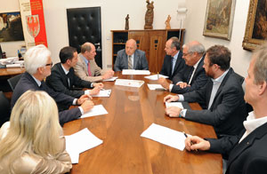 Unità d'intenti, fra il presidente della Giunta provinciale e i vertici del Wirtschaftsring, per quanto riguarda l'abbattimento della burocrazia. "Valutiamo costantemente e con la massima attenzione le esigenze di cittadini e imprese - ha sottolineato Luis Durnwalder - e sono convinto che in questo settore saremo in grado di raggiungere grandi risultati per quanto riguarda l'alleggerimento del carico burocratico". Un passaggio importante, da questo punto di vista, riguarda i nuovi criteri per gli appalti pubblici con il via libera da Roma all'innalzamento a un milione di euro del tetto minimo oltre il quale vi è l'obbligo di svolgere la gara, e da Bruxelles al frazionamento per lotti. "Ci sarà più spazio per le piccole imprese locali - ha spiegato il presidente Durnwalder - senza contare la novità dell'agenzia unica per gli appalti varata dalla Giunta provinciale, che contribuirà ad offrire a tutti maggiori garanzie dal punto di vista giuridico".