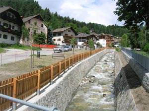 Nel corso dei lavori realizzati dall’Azienda speciale bacini montani a partire dallo scorso mese di aprile è stato demolito il muro di contenimento sulla sponda destra del Rio verde per una lunghezza di 140 metri al di sopra del ponte Rubner ed è stato quindi ricostruito un nuovo argine in muratura.