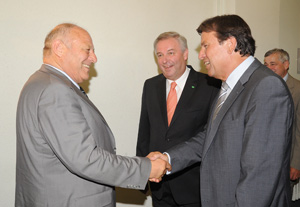 Nel pomeriggio odierno la delegazione della Stiria guidata dal presidente della Giunta, Franz Voves, dal suo vice, Hermann Schützenhöfen e dal presidente del Consiglio, Manfred Wegschneider, è stata ricevuta a Palazzo Widmann dal presidente Luis Durnwalder.