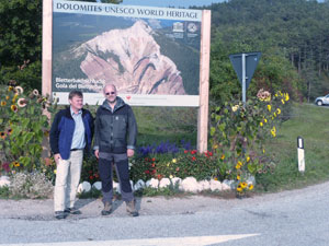 Greame Worboys e il direttore di Dipartimento Flavio Ruffini davanti ad un tabellone delle Dolomiti patrimonio mondiale