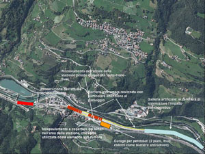 Il programma prevede l'incapsulamento del tratto nella zona di Maso Schönauer con la costruzione di una galleria artificiale che comprenderà non solo il percorso esistente ma anche il necessario collegamento ferroviario. "Inoltre - prosegue Laimer - sempre sotto Maso Schönauer verrà realizzata una barriera antirumore con un materiale in grado di ridurre in maniera drastica l'impatto dell'opera dal punto di vista paesaggistico". Oltre a galleria e barriera antirumore, il progetto prevede anche la copertura di tutto l'areale della stazione di Ponte Gardena, senza considerare che lungo il fiume Isarco sono previsti ulteriori interventi per l'abbattimento dell'inquinamento acustico a beneficio della parte occidentale della vallata.
