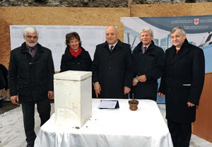 Il presidente della Provincia, Luis Durnwalder, e gli assessori Florian Mussner ed Hans Berger hanno preso parte questa mattina alla cerimonia della posa della prima pietra per l’ampliamento della scuola professionale “Savoy” di Merano. L'ampliamento è di 22.500 mc ed il costo sarà di circa 15 milioni di euro.