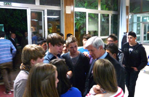 L'assessore Berger nel corso della festa che ha celebrato i dieci anni di gemellaggio tra le due scuole