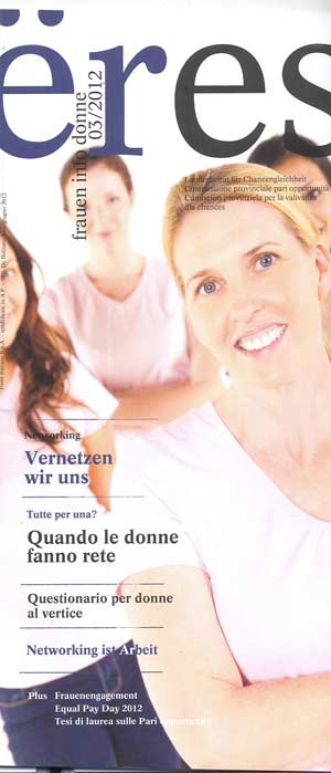 Il nuovo numero della rivista informativa edita dalla Commissione provinciale per le pari opportunità si sofferma con articoli initaliano ed in tedesco, sull'importanza che le donne facciano rete presentando pareri di alcune donne altoatesine in posizioni apicali abituate a fare rete fra le quali Lia Nadalet, architetto fondarice del gruppo Donne e Architettura, Marion Piffer Daminai, curatrice e presidente della Fondazione Museion, Gabriella Gios, fino al 2011 primario del reparto pediatria dell'Ospedale di Silandro e presidente del Soroptimist Club Bolzano, o Paola Volcan, dirigente della Cassa di Risparmio e presidente del Zonta Club Bolzano.