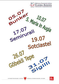 L'ultimo incontro dei "Bibliomatinée" è in programma martedì 31 luglio, dalle 9 alle 10, con Lidia Borgogno che presenterà una relazione dal titolo "I sigilli in cera dell'Archivio Provinciale". L'appuntamento ad ingresso libero avrà luogo presso la sede della Biblioteca provinciale italiana "Claudia Augusta", in via Mendola 5 a Bolzano (info: 0471 264444, info@bpi.claudiaugusta.it, www.bpi.claudiaugusta.it).