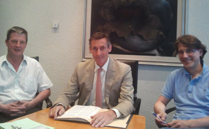 Unità d'intenti sul progetto Metrobus tra la Provincia e i comuni di Appiano e Caldaro: l'assessore Thomas Widmann fra Wilfried Trettl e Raimund Fill