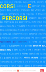 I corsi programmati dalle agenzie educative di educazione permanente nel periodo settembre 2012-agosto 2013 sono elencati nel bollettino "Corsi&Percorsi" edito dal Dipartimento cultura italiana. L'opuscolo è in distribuzione gratuita e può essere scaricato dal web.