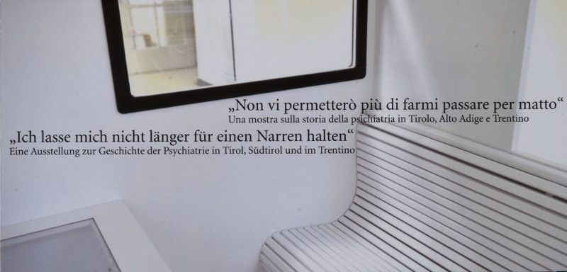 La mostra "Non vi permetterò più di farmi passare per matto" dedicata alla storia della psichiatria in Tirolo, Alto Adige e Trentino è ospitata da "kunstMeran" presso l'edificio della Cassa di Risparmio, Portici 163 a Merano dal 20 ottobre al 18 novembre 2012. L'inaugurazione si terrà venerdì prossimo, 19 ottobre 2012, alle ore 18.00.