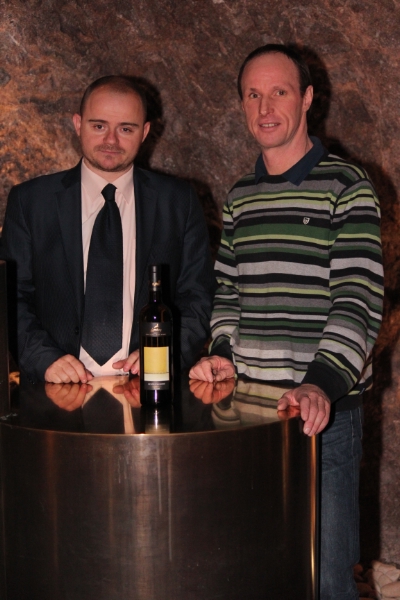 Il direttore di Laimburg, Daniel Bedin, presenta con il maestro cantiniere Urban Piccolruaz il Gewürztraminer Elyònd annata 2010 nella Cantina di roccia di Laimburg
