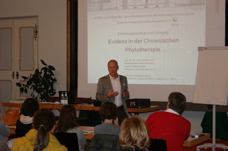 I docenti del seminario introduttivo, Prof. Dominik Irnich, dirigente del Centro scientifico della Società tedesca di agopuntura e dell'ambulatorio interdisciplinare di medicina del dolore alla Clinica universitaria Ludwig-Maximilian di Monaco di Baviera, insieme ad Andreas Koepp, già docente e coordinatore per la specializzazione in fitoterapia cinese presso l'Università Witten-Herdecke, hanno relazionato nel corso del seminario anche sui temi come "Evidenza scientifica nella fitoterapia cinese" e "Fitoterapia cinese nella pratica terapeutica quotidiana".