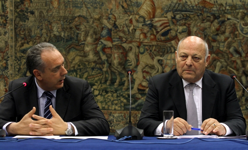 Il sottosegretario Legnini e il presidente Durnwalder durante la conferenza stampa di presentazione nella sede RAI