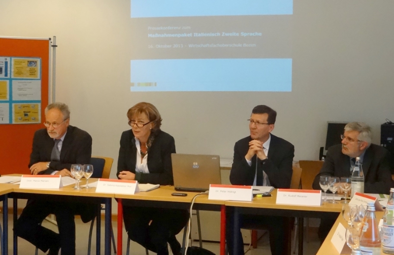 Si è svolta questa mattina (16 ottobre) presso l'Istituto superiore "Heinrich Kunter", a Bolzano la conferenza indetta dall'assessora provinciale alla scuola e cultura di lingua tedesca per presentare le misure per rafforzare l'apprendimento dell'italiano seconda lingua nelle scuole di lingua tedesca.
