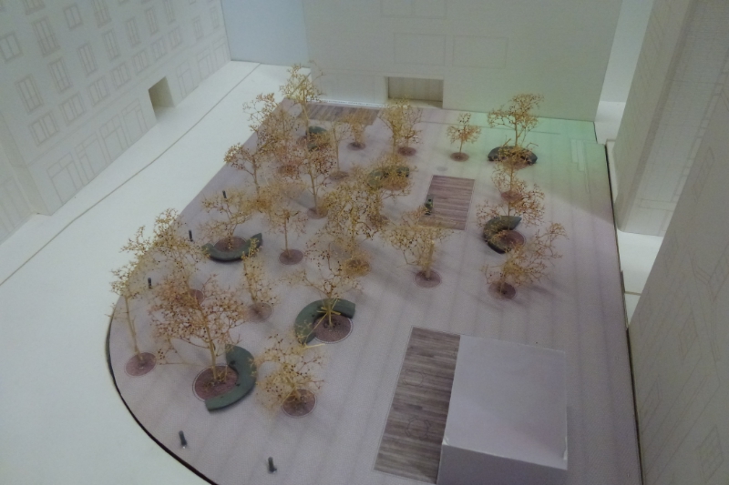 Al concorso di progettazione erano stati invitati nove studi professionali. I progetti proposti erano stati, quindi, valutati in forma anonima dalla giuria composta da un team di esperti presieduto dall'arch. Paolo Bellenzier. La proposta dell'Arch. Stanislao Fierro prevede il riordino dello spazio con una serie di alberi dove ora vengono, invece, parcheggiate auto e bici.