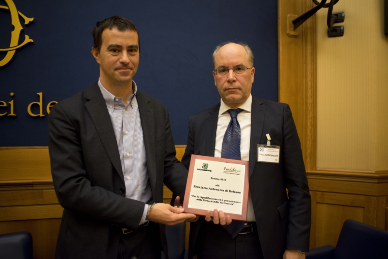 Il Rapporto Pendolaria di Legambiente é una ricerca annuale sullo stato del trasporto ferroviario locale sulle linee ferroviarie in tutta l'Italia. L'edizione 2014 è stata presentata a Roma nella Sala stampa della Camera dei Deputati e ha visto la Provincia di Bolzano premiata per la riqualificazione e il potenziamento della ferrovia della Val Venosta. "Siamo molto onorati per questo premio che é l'ulteriore conferma dell'ottimo servizio offerto dal trasporto pubblico locale, come dimostrano i numeri record del 2014 con un aumento costante delle obliterazioni sui treni locali", sottolinea il direttore di Dipartimento Valentino Pagani che ha partecipato alla premiazione in rappresentanza dell'assessore alla mobilità Florian Mussner. "I risultati ottenuti sulla linea Merano-Malles sono estremamente positivi, il prossimo passo è la prosecuzione della progettazione e conseguente realizzazione dell'intervento di elettrificazione della linea della Venosta", ricorda Mussner.