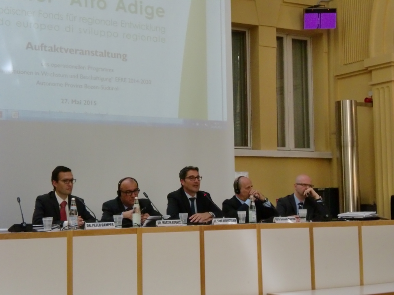 Dopo l'ok dell’UE, la Giunta provinciale ha avviato la concreta attuazione del programma operativo FESR (Fondo europeo di sviluppo regionale) "Investimenti a favore di crescita e occupazione" per il periodo 2014-2020. Oggi (27 maggio) a Bolzano si è svolto l’evento di lancio rivolto ai soggetti interessati. Quattro gli assi finanziati con 136,6 milioni di euro, 63 in più del programma precedente.