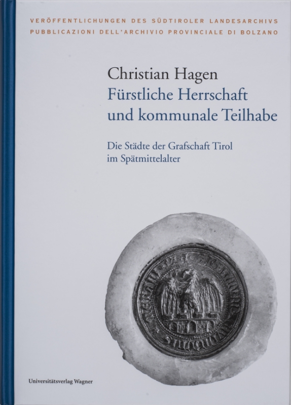Mercoledì 8 luglio l'Archivio provinciale di Bolzano e la casa editrice Universitätsverlag Wagner presentano il nuovo volume della collana "Pubblicazioni dell'Archivio provinciale di Bolzano": si tratta del libro di Christian Hagen sui rapporti tra signoria tirolese e i Comuni nel Medioevo in alcuni centri tra cui Bolzano, Merano e Vipiteno.