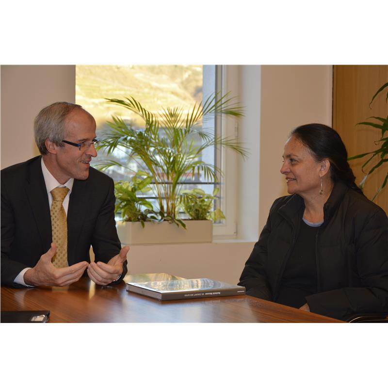 In rappresentanza dell'assessore provinciale Theiner, il direttore di Dipartimento Florian Zerzer ha ricordato l'azione della Provincia in tema di tutela del clima, "sia nell'impüulso alle energie rinnovabili che nel modello CasaClima e in futuro maggiormente nel settore del traffico." A Esperanza Martinez il direttore Zerzer ha consegnato il Piano clima dell'Alto Adige con la Strategia energia 2050. "Incontri come quello con Esperanza Martinez sono un stimolo a continuare su questa strada e a mostrare responsabilità nel lavoro assieme ai Comuni per raggiungere gli obiettivi di tutela ambientale fissati dalla Provincia", ha concluso Zerzer. Esperanza Martinez, fondatrice e direttrice dell'associazione ecologista "Accion Ecologica" con sede a Quito in Ecuador, referente per l'organizzazione internazionale "Oilwatch" che unisce a livello mondiale iniziative contro le ingerenze delle multinazionali, è da anni anche un riferimento in Ecuador per i progetti di cooperazione promossi dalla Provincia di Bolzano e per l'attività nell'Alleanza per clima che coinvolge i Comuni.