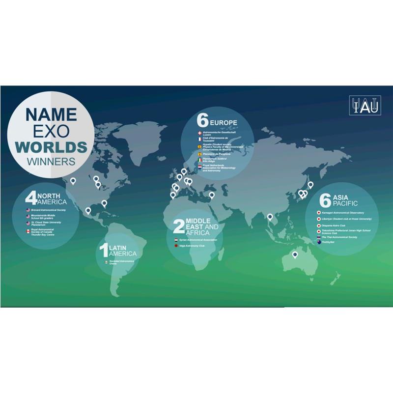 Chiuso il concorso NameExoWorlds dell’Unione Astronomica Internazionale (UAI), il pubblico ha deciso i nomi dei 19 ExoWorlds (14 stelle e 31 esopianeti in orbita intorno a stelle lontane), che ora saranno ufficialmente riconosciuti dalla comunitá astronomica. Oltre mezzo milione sono stati i voti da 182 Paesi, e tra le proposte accolte ci sono anche quelle del Planetarium Alto Adige.